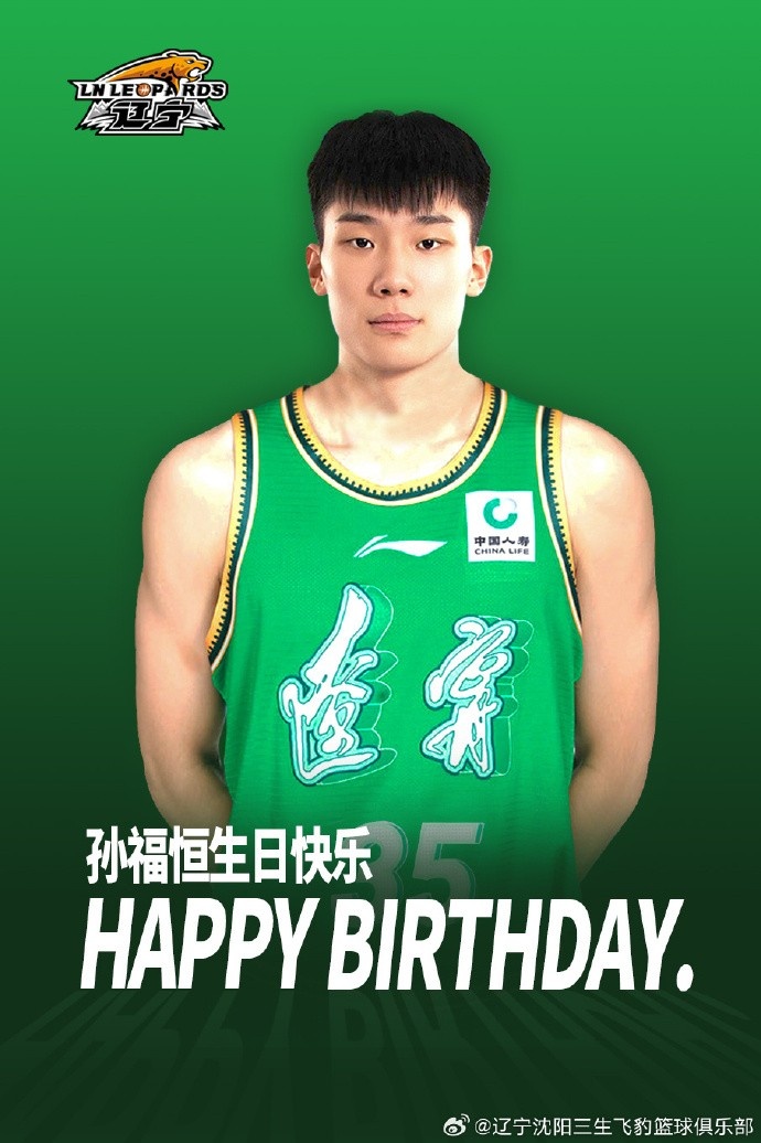 真挚的祝福!祝辽宁男篮球员孙福恒19岁生日快乐!